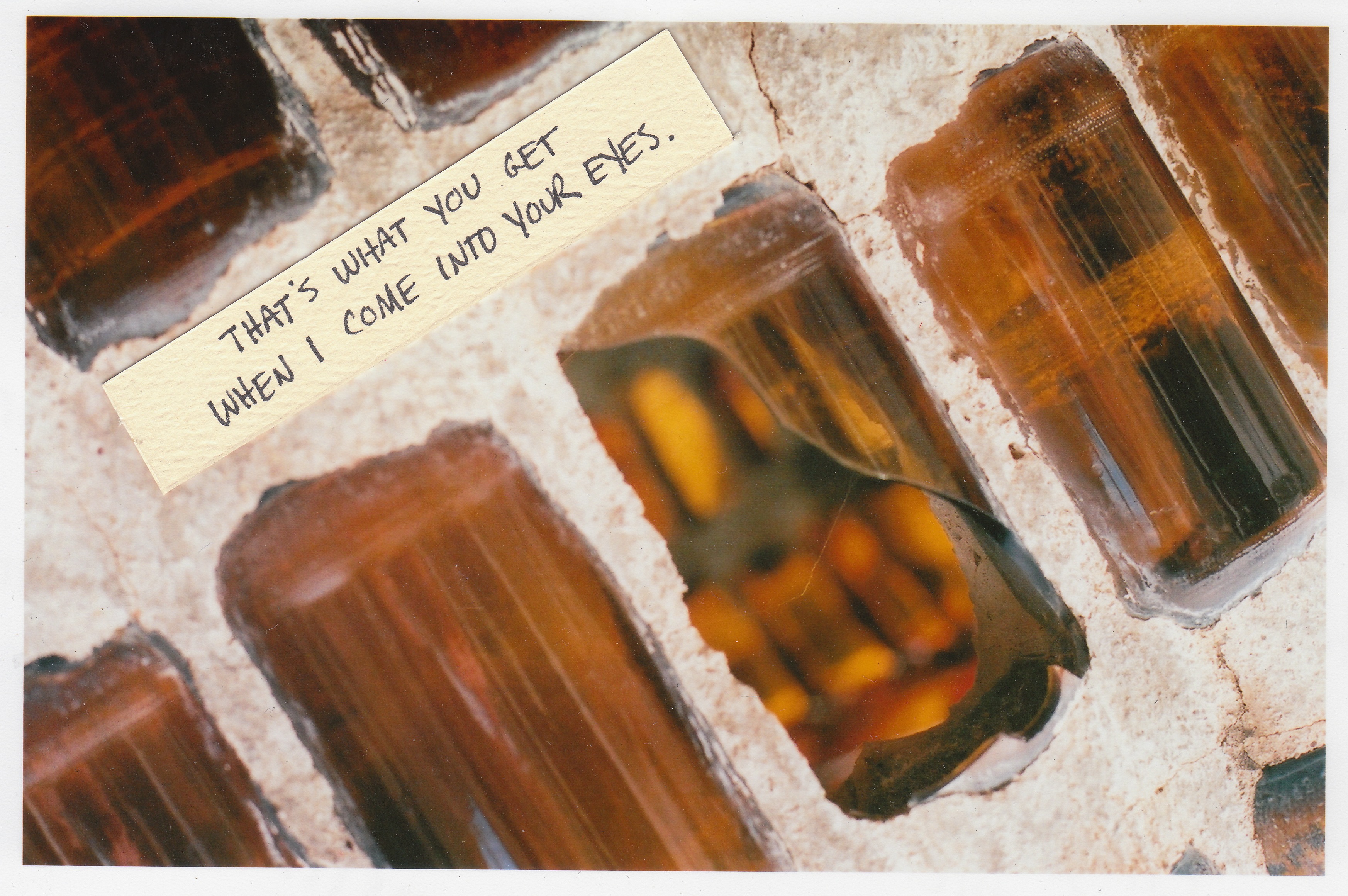 That’s what you get when I come into your eyes. If you see black flakes, you’re lucky, because they’re the last bits of beauty you’ll feel. Everything else will burn off in the heat of me, the light, the truth, the lack.