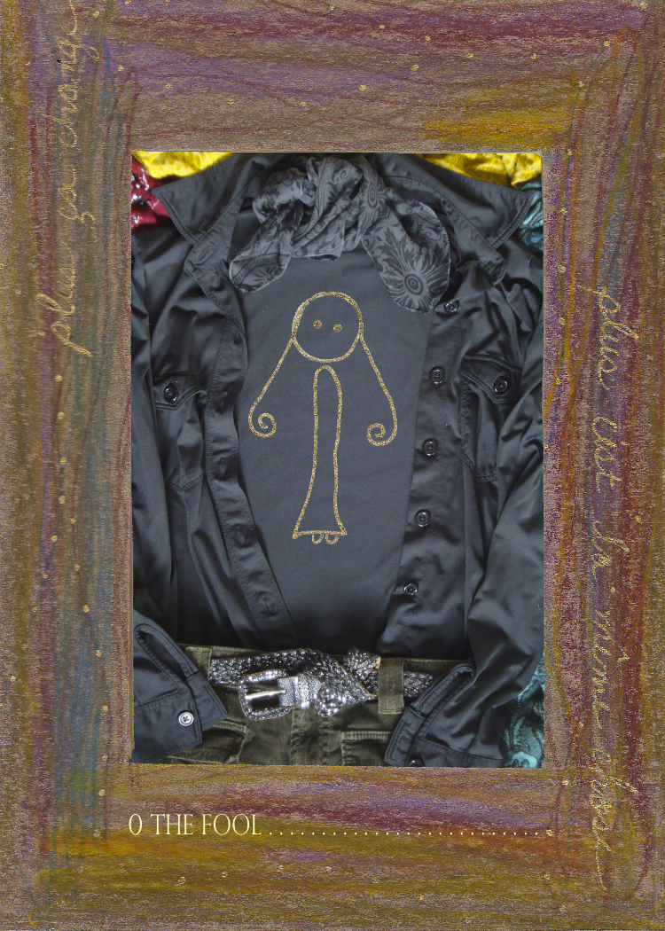 The Fool in Ann’s Fashion Tarot is a well-coiffed woman who drops her nightgown to the floor in an empty bedroom in front of the mirror, and says, well, here I am.