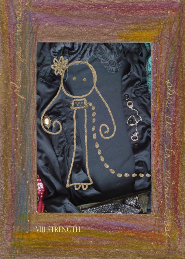 The Strength card is about wearing your deep dark heart on your sleeve or on your neck or in your hair, wherever, just as long as it’s visible so you can see a little flash of the fact that you’ve got some depth and some balls and you will get through this. That’s all.