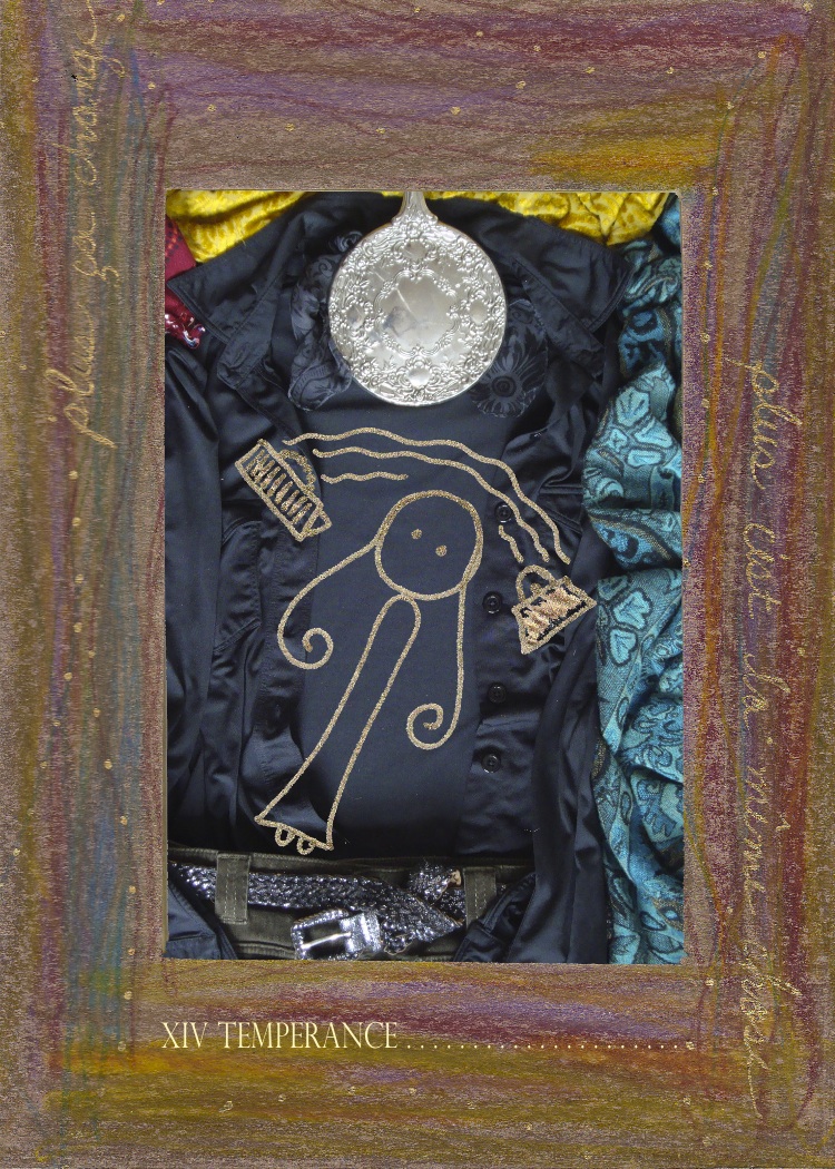 The Temperance card is about unseen forces at work, things you don’t notice when you look in your regular mirror every regular day. It takes imagination and some bravery to take an honest look at the back of your hair or the back of your pants, or whatever, and realize you’re not ever really getting the whole picture. Normal views don’t account for the height of the person behind you, or blinding love, or crippling envy or shitty lighting or somebody else’s bad/good day.