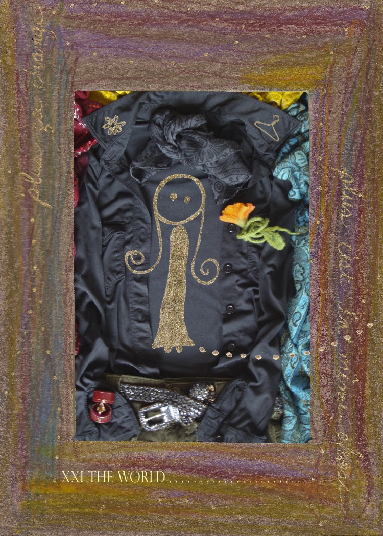 In regular Tarot, The World says you’re headed for balance, completion, fulfillment. In Ann’s Fashion Tarot, The World says listen up, sister, your shins are ruined but these $3.99 stick-on crystals will fit right in the channels and the sum might be better than a regular pair of legs.