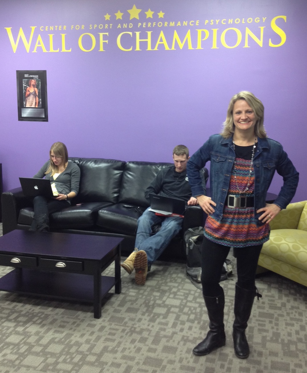 Cindra Kamphoff is the academic and spiritual leader of the new Center for Sport and Performance Psychology. She’s not saying the spiritual part; I’m saying that. It’s an entirely secular state-funded center, let’s be clear, in a really nice freshly painted office space in University Square which is the classiest of retail hotspots. This is no flake place. But its director is a pulsing beaming force with a superpretty aura, and I’d kind of like to see her dressed accordingly.