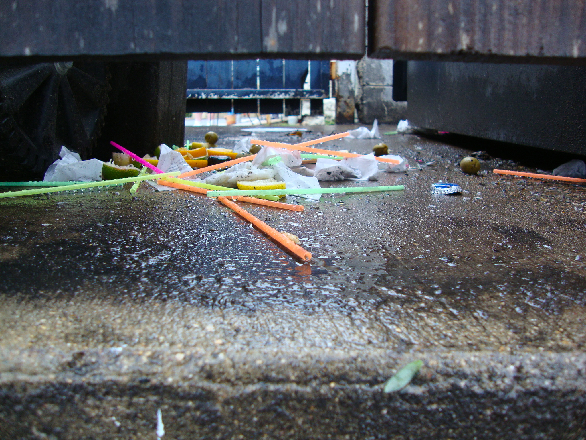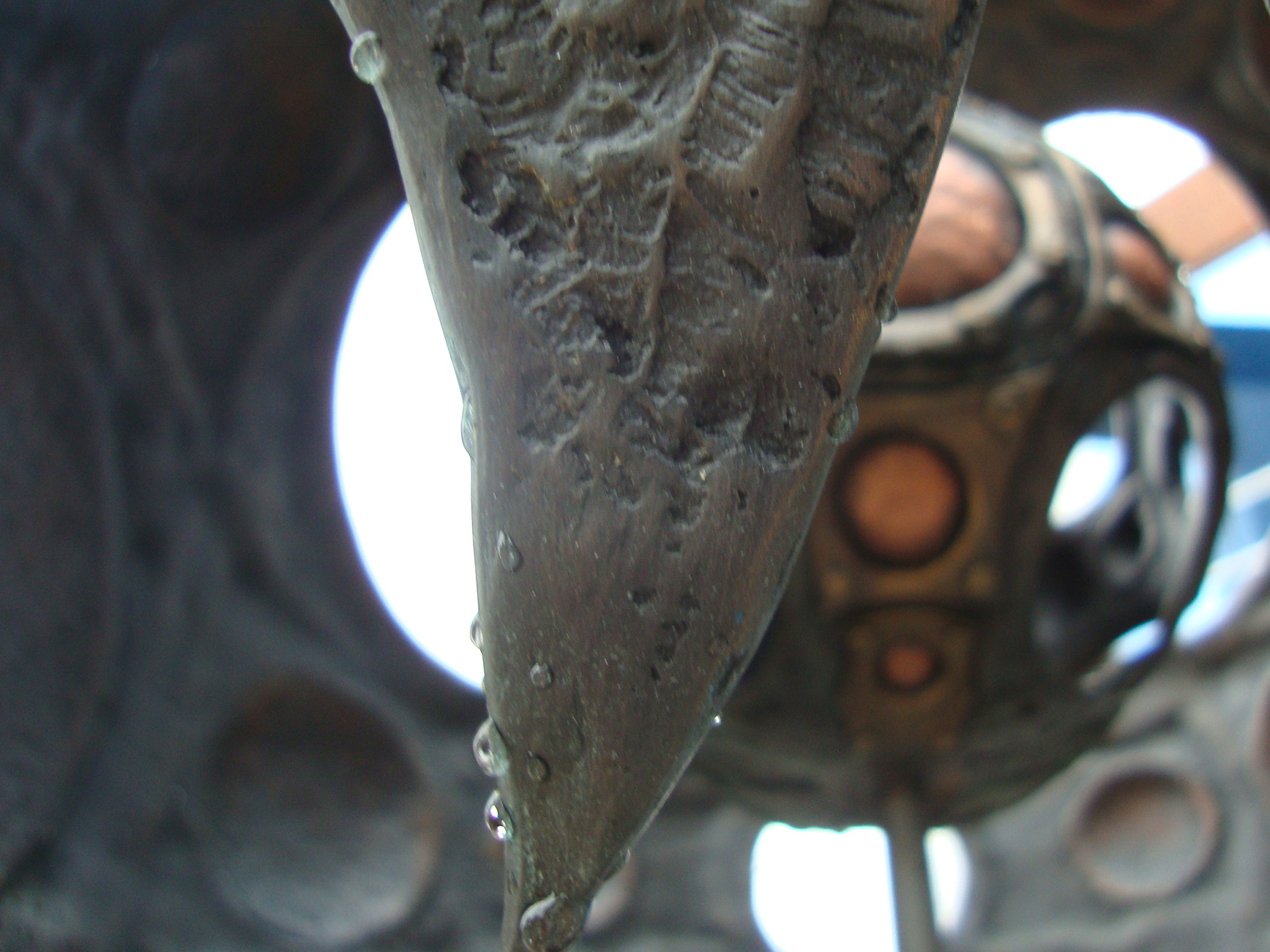 The sculptures take on a different texture when they’re slicked down and paired with roadside accessories. Like a brand new look. Let’s call it “wet gutter cocktail.”