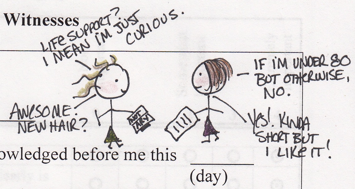 Today I had the honor of notarizing my friend Jen’s health care directive. She has a great new haircut, so our conversation was pretty much fifty-fifty.