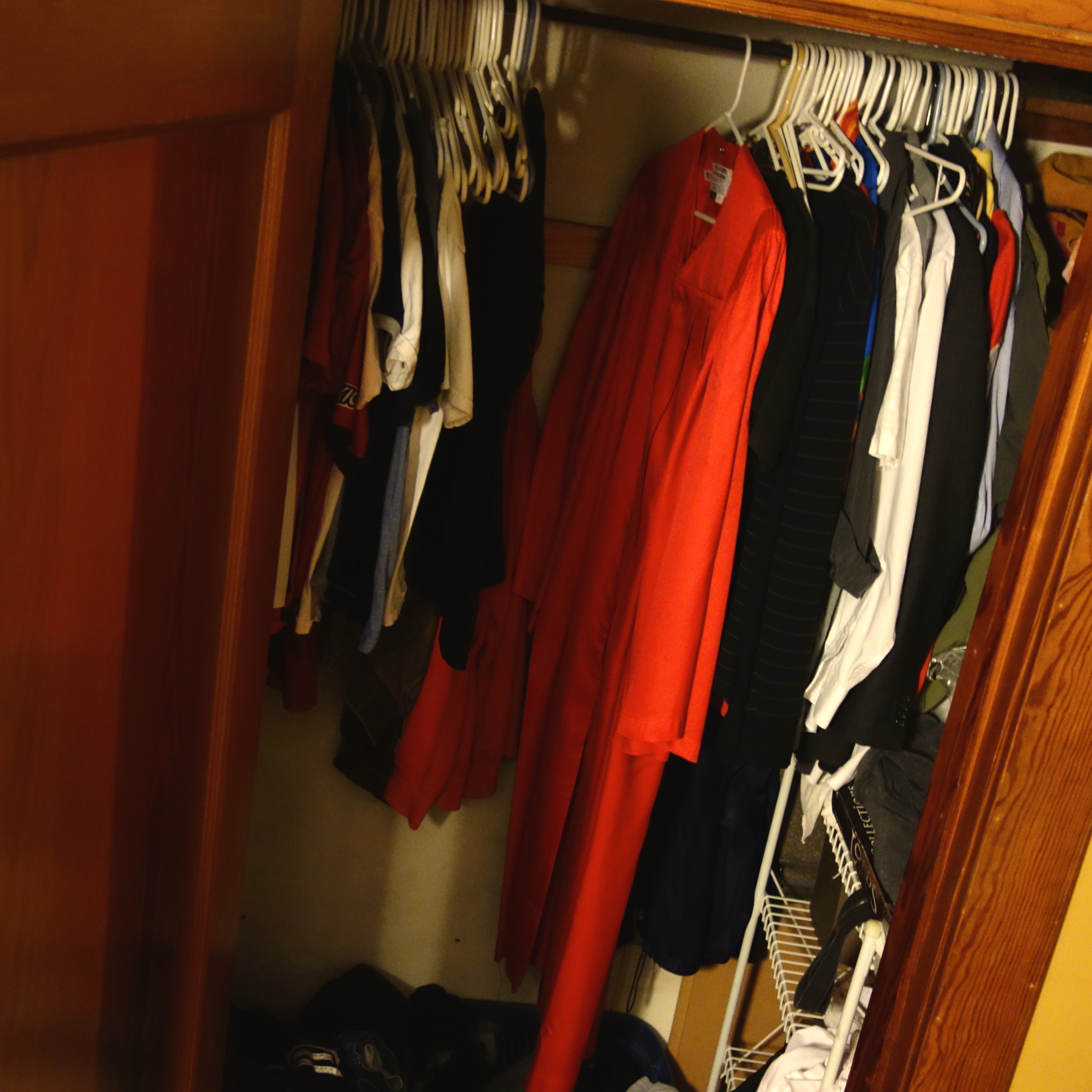 Today he graduates. So very happy for him, and so proud. Proud of his creative outside-the-lines accomplishments throughout K-12, yeah, but mostly right now proud that he hung the rental robe on a hanger to get the wrinkles out, just like the directions said. Just like the directions said! Public education, everyone.