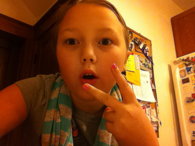 She shrugs. She’s actually in a sweatpants stage right now, although she wears the look with as much panache as is possible when there are words written across your butt. Her accessories du jour are elastic hairbands around her wrist and a braided pink bracelet that she wears everywhere.