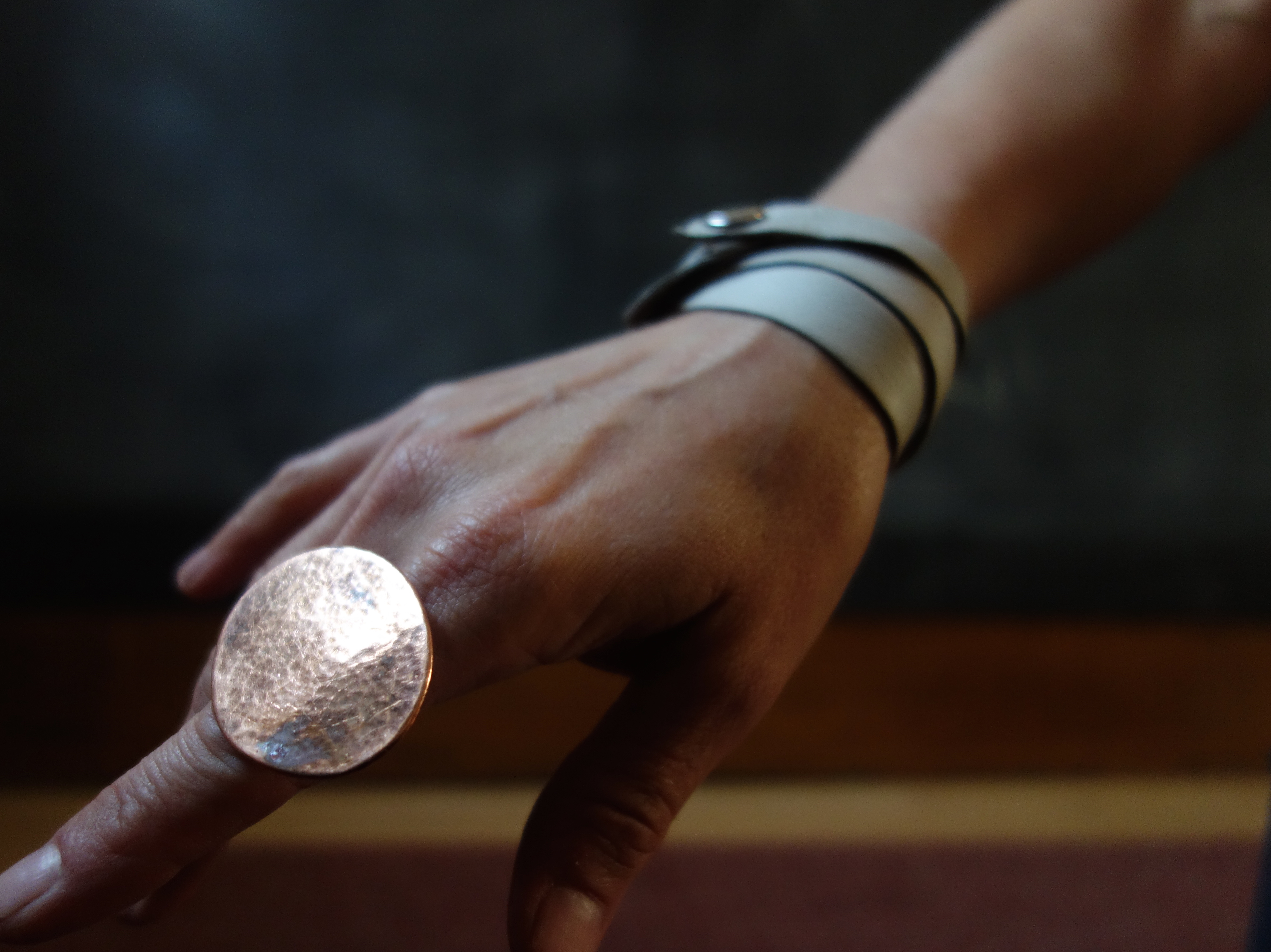 Check out how the copper is all pocked and lovely. Check out how it looks so completely at home and happy to be on a hand that’s slowly turning into the hand of a much older relative whose veins are popping out. You can see why the leather and the copper are the main things of my uniform.