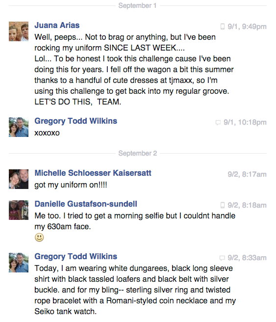 Great job everyone! I plan my wardrobe color schemes and concepts weeks in advance so I knew I couldn’t do it. You’re brave souls.