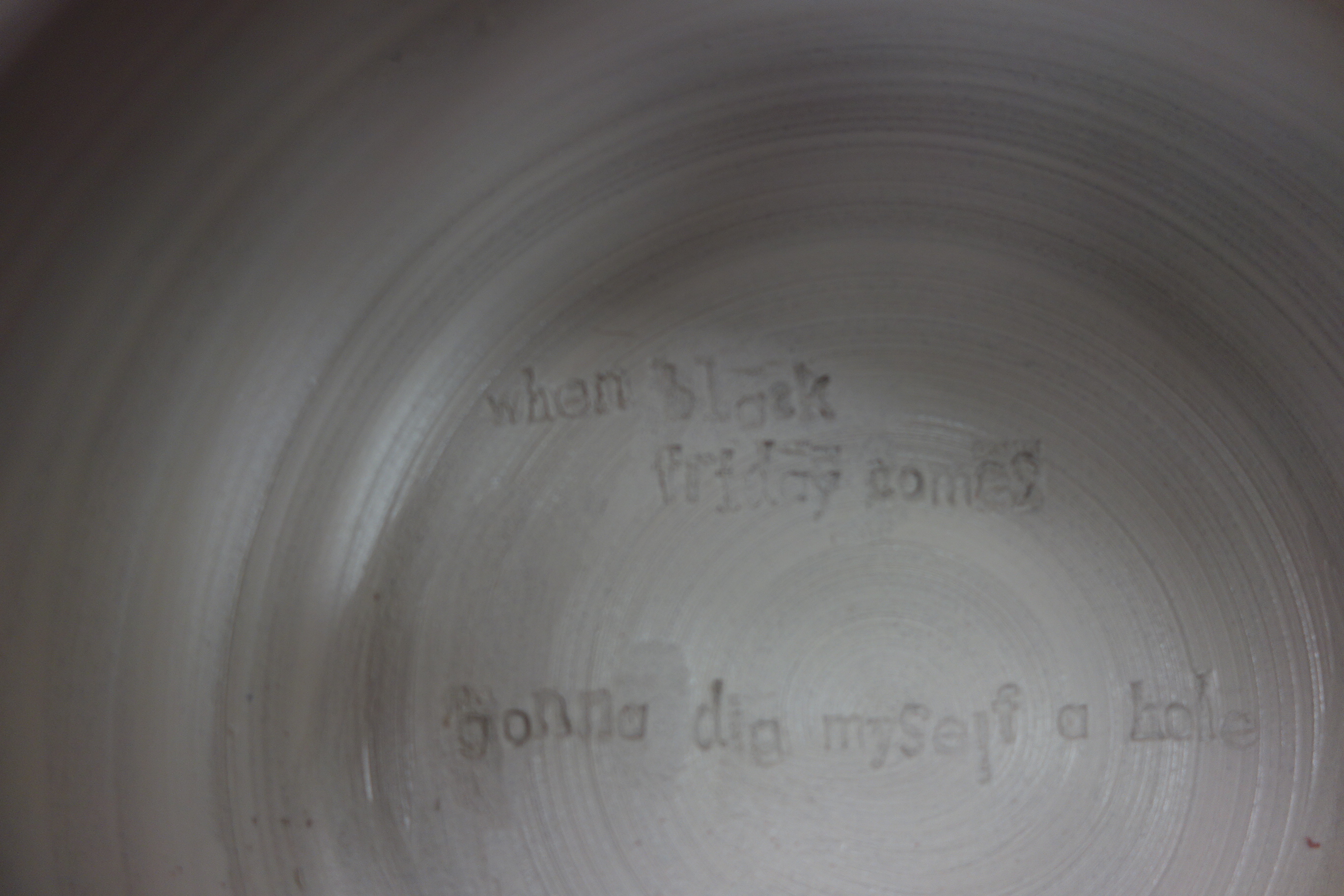 I’m like, hey, Caitlin, you think I could get one of you guys to make me six bowls so I can push words into them? I have this idea for my fourth annual Black Friday lovepost to Steely Dan.