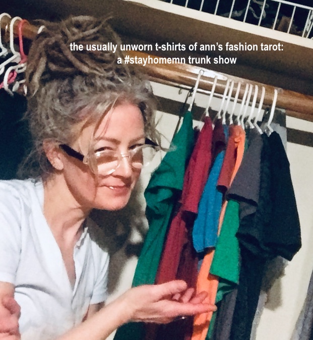 There’s a lot of talk right now about gratitude for what we have, and staying grounded amidst uncertainty, and I cannot tell you how grateful I am for my small but solid collection of meaningful t-shirts which are presently serving as my downward-facing-dog of style.