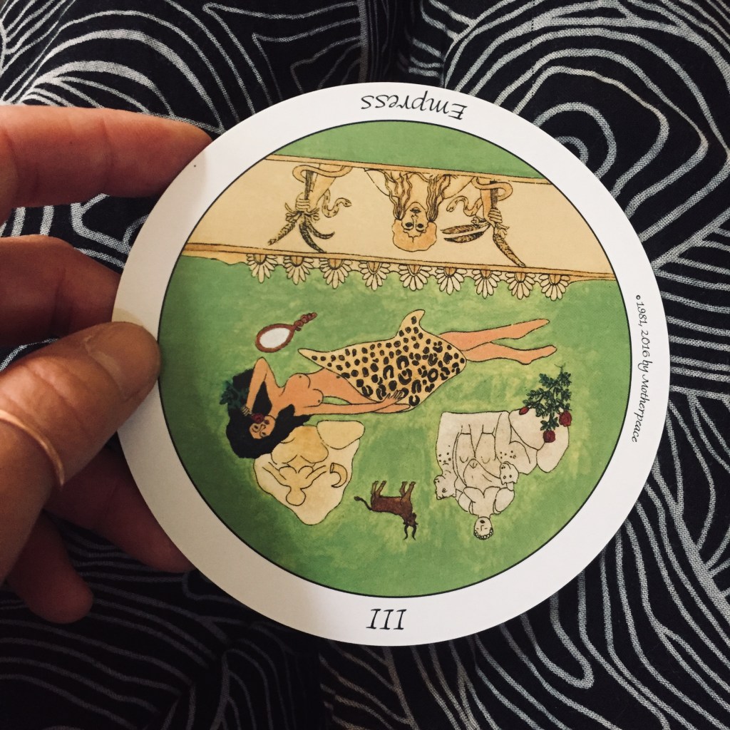 The Empress [Reversed] appeared in 100% of the four (4) tarot readings I’ve delivered over the past 48 hours. The readings were a pledge premium for KMSU, which, turns out the demographic that 1) supports public radio + 2) wants a tarot reading = middle aged white women. We will throw me into that sample as well, as middle-aged whitelady fortuneteller. Anyway. The Empress right-side-up is about being expressive and generative and putting stuff out there. It’s the you-go-girl of making and saying things. The Empress [Reversed] is about taking a beat.