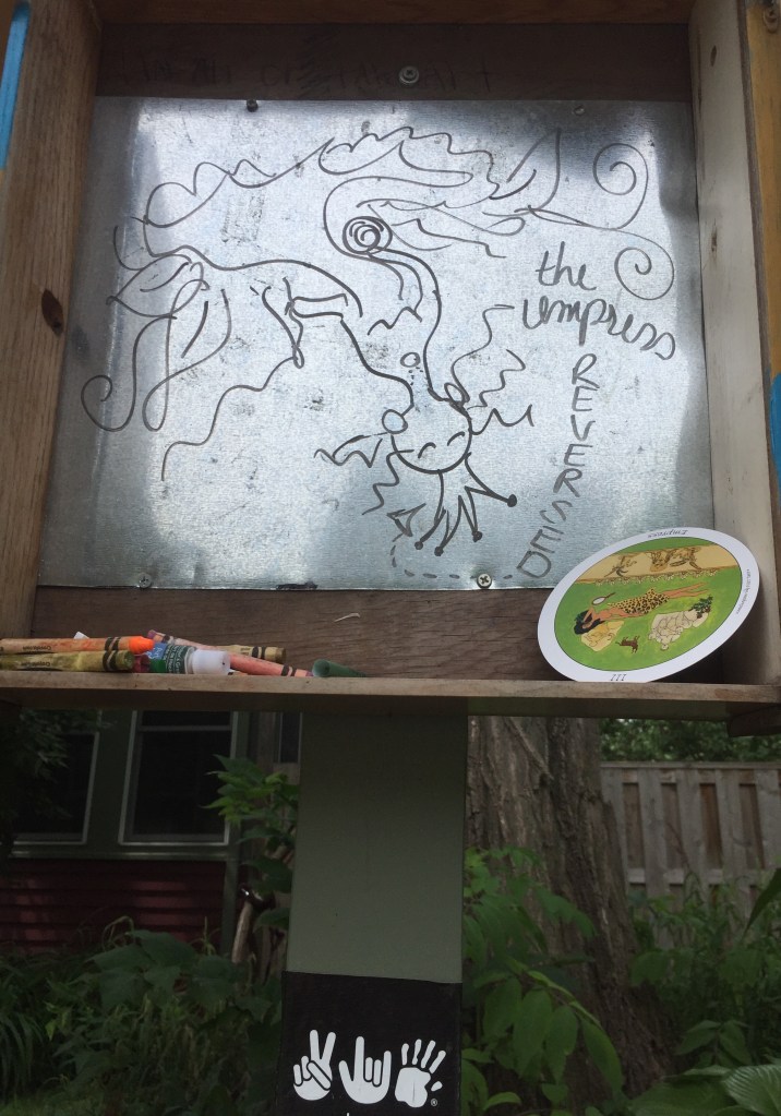 That seemed to make sense for everybody personally, like relative to whatever personal circumstances caused them to seek a reading. It also seems to make some sense for the group as a group. Pretty sure I’m bound by science or tarot or both to publish these findings, so I did just that in the nearby Public Art Box owned and operated by the artist Patti Ruskey who does zero social media probably because she’s busy being attuned to higher powers. Here is evidence of the dissemination of my findings.